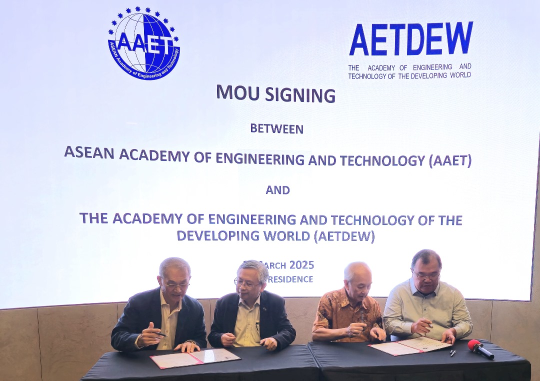 Kuala Lumpur, 8 March 2025 – In a significant effort to enhance technological advancement and engineering solutions across the developing world, the ASEAN Academy of Engineering and Technology (AAET) and the Academy of Engineering and Technology of the Developing World (AETDEW) have officially signed a Memorandum of Understanding (MOU).