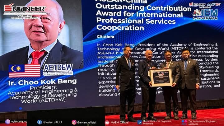 AETDEW President Ir. Ts. Choo Kok Beng Receives Prestigious ASEAN–CHINA Award and Delivers Keynote in Kuala Lumpur Convention Centre, Malaysia 11 Sept 2025